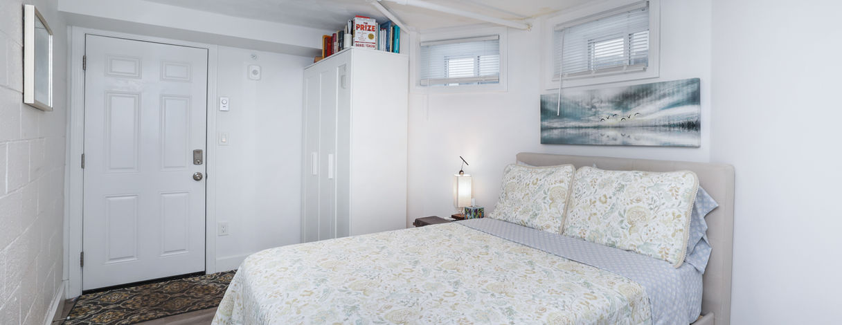 The apartment is fully furnished with a full-size bed (54" x 75" ; 137 x 190 cm.), including linens and cooking utensils. It is located on the garden level. It consists of two large bedrooms, a bathroom, and an open-layout kitchen, dining room / living room.